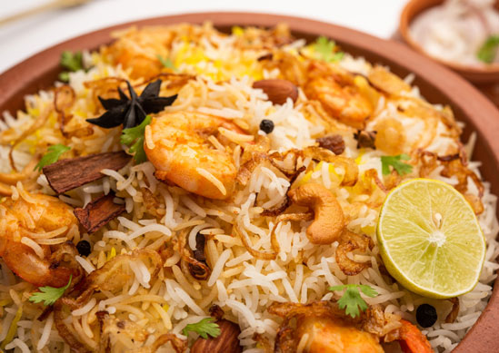 (onze rijstschotels) Alle Biryani’s worden geserveerd met Raita